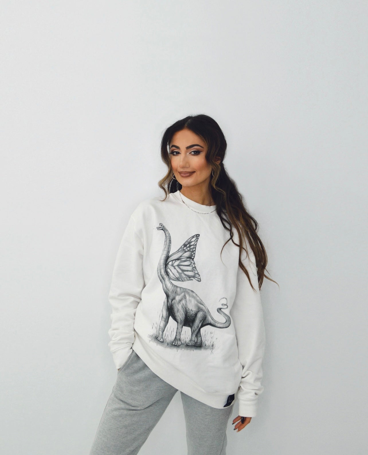 Dinofly Crewneck is a fun, quirky white crewneck.