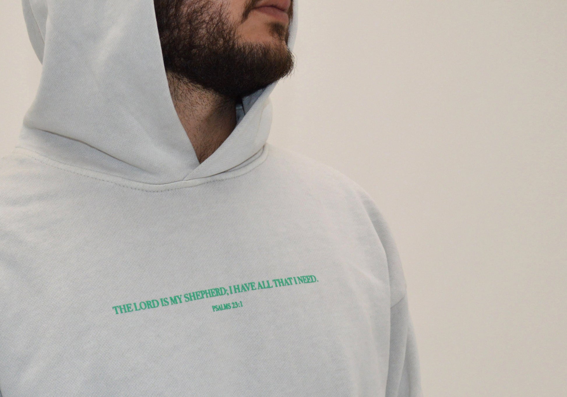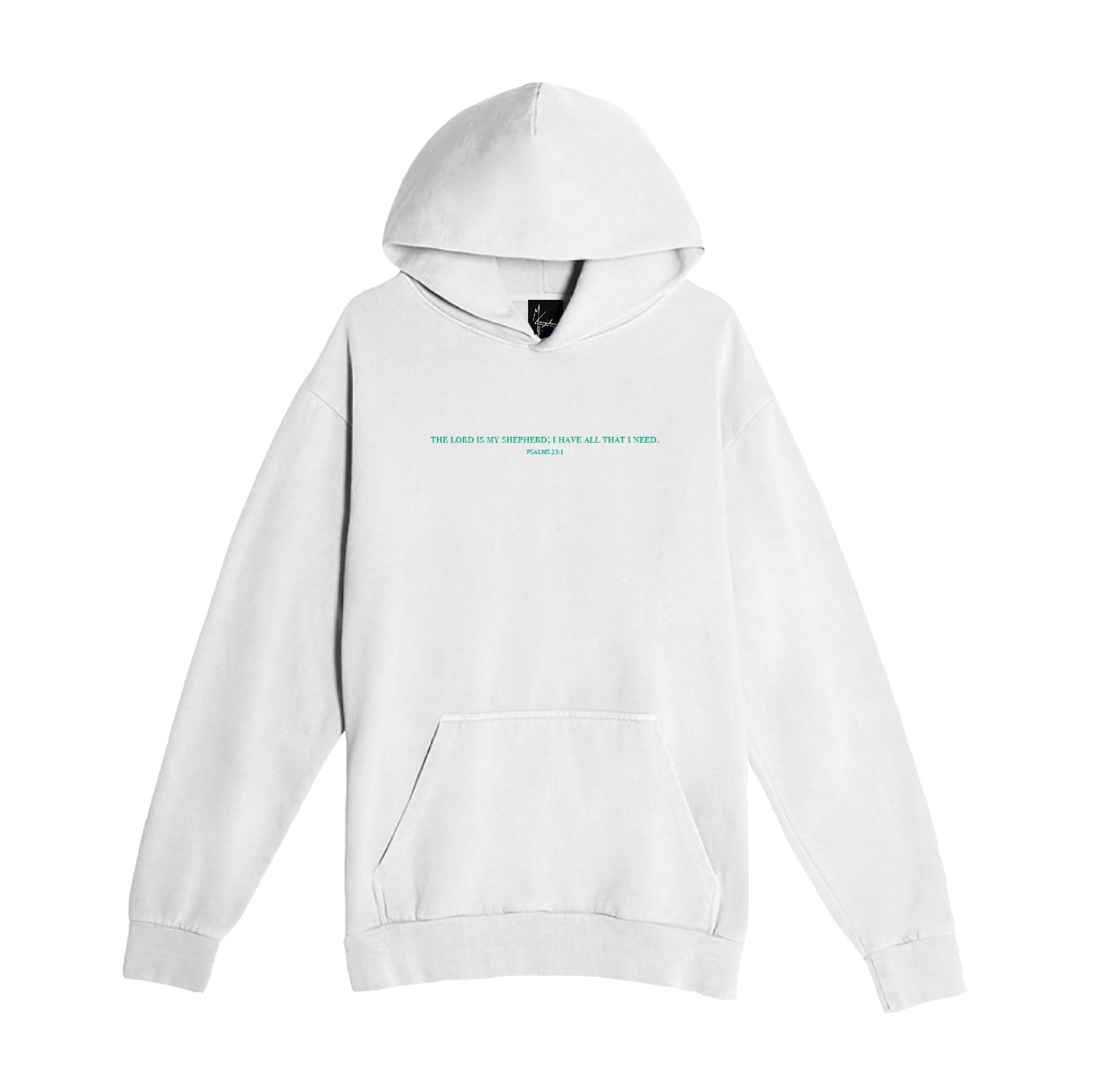 Introducing Green Fire hoodie! “The Lord is my shepherd; I have all that I need.” This hoodie has Psalms 23:1 written in puff print on the front and Psalms 23 in a green flame on the back.