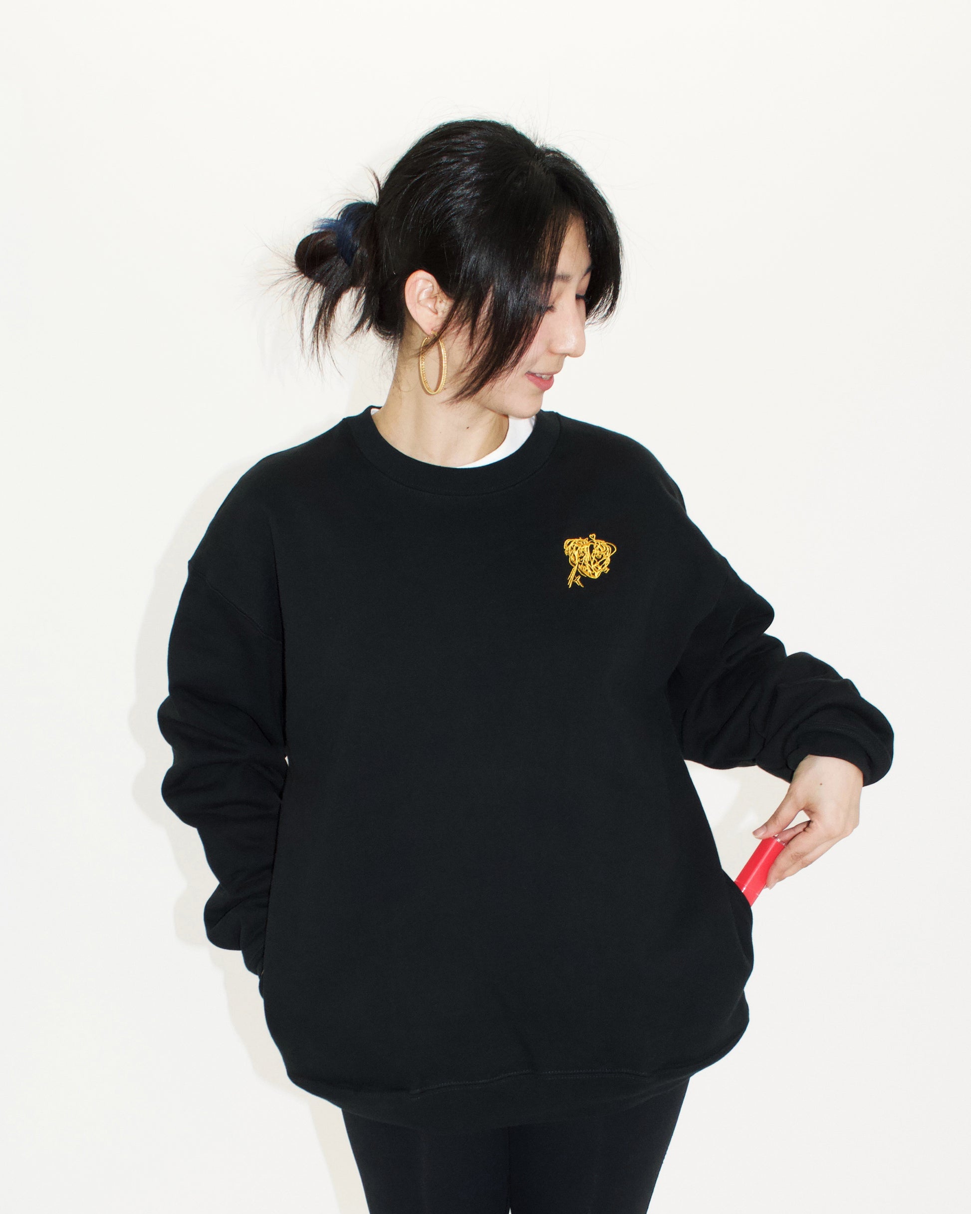 This contemporary, comfy and functional embroidered crewneck is inspired by the "MK" oil painting of a gold heart.